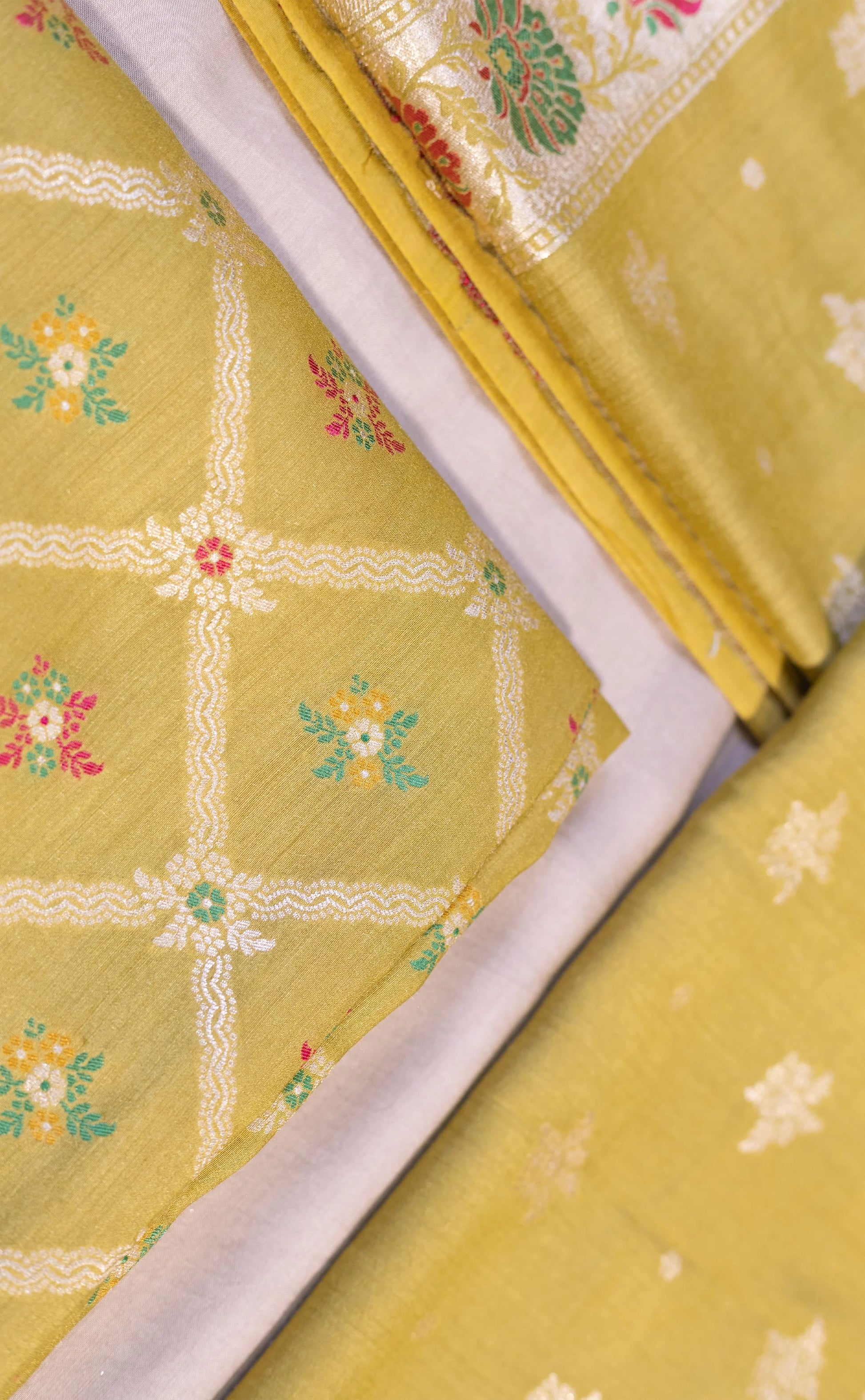 Minakari Kardwa Buta Chaniya Silk Suit Set