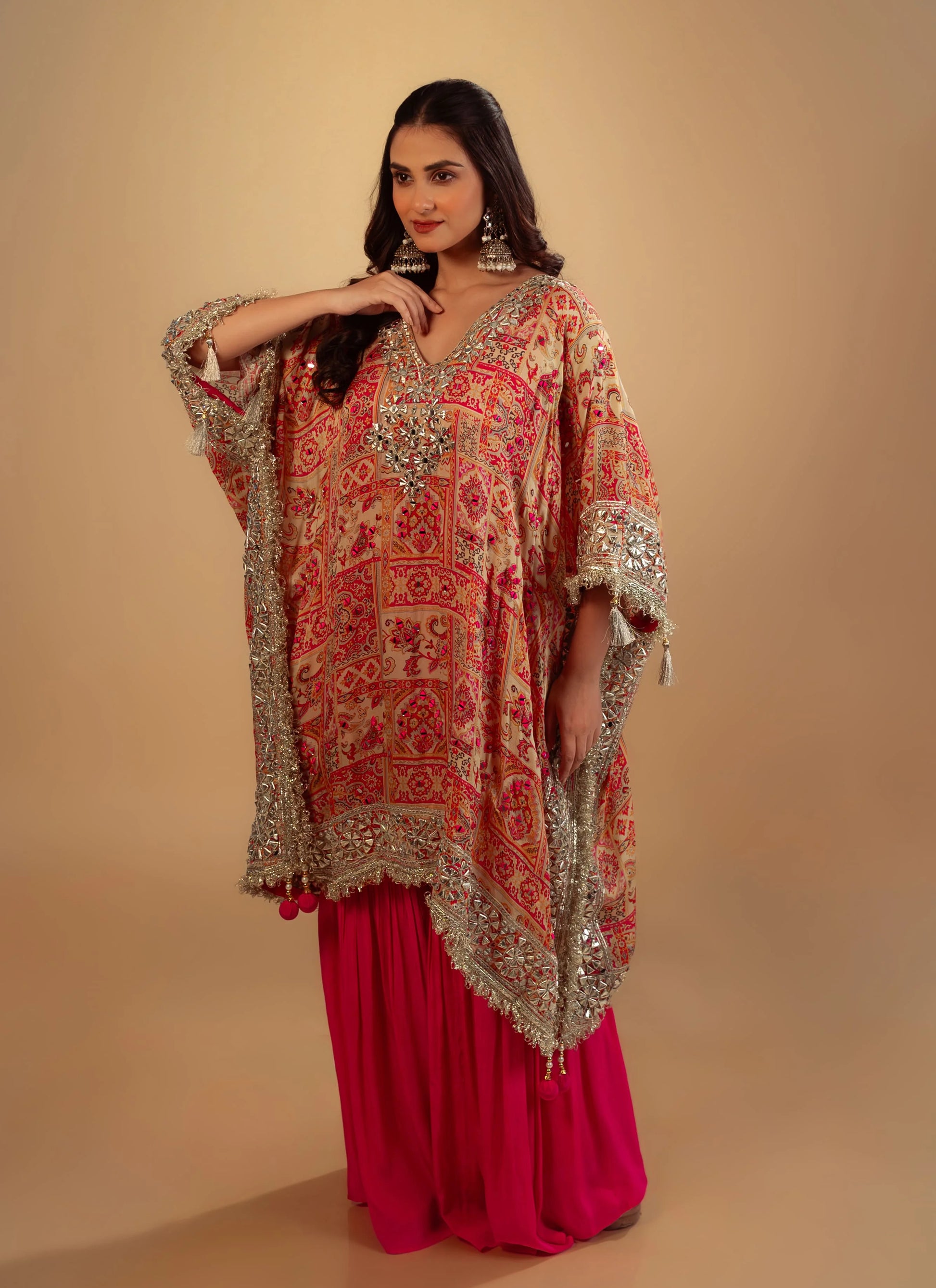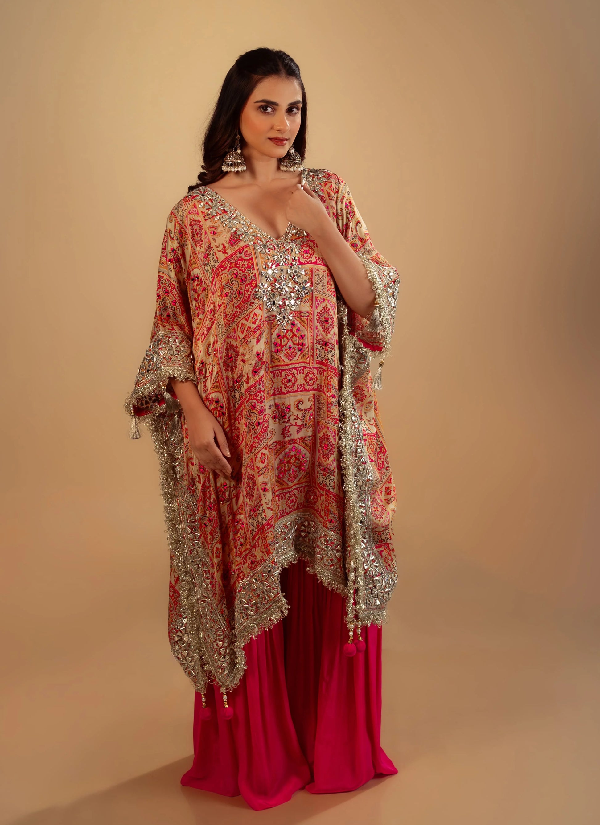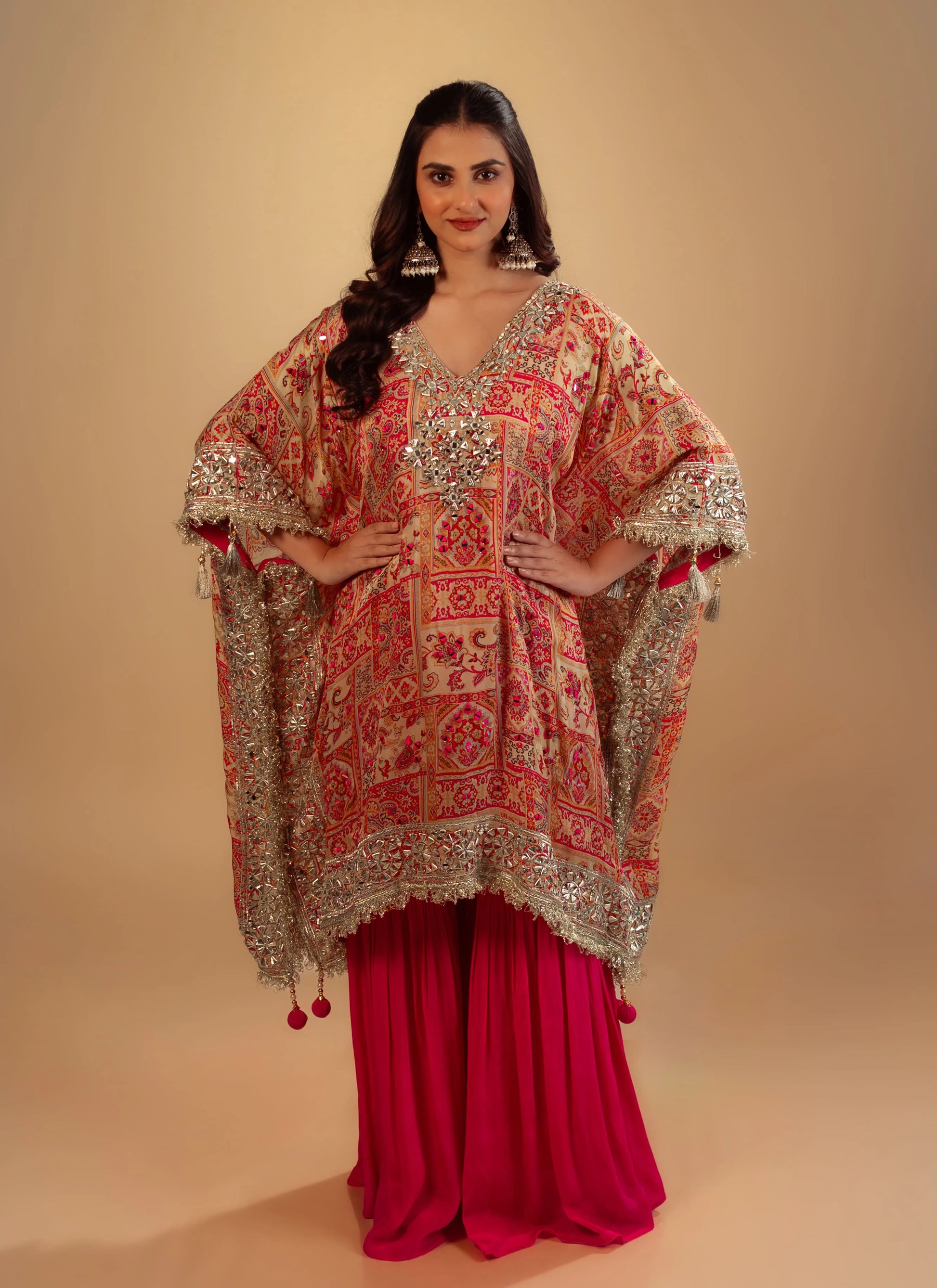 Hand Embroidery Pink Laheria Kaftan Set